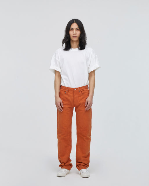 伝統的なセルヴィッチデニムです。ブルキナコットンを使用しているので、産地へのリスペクトを込めてブルキナファソ国の国旗の色が耳に織られています。