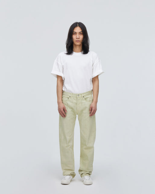 伝統的なセルヴィッチデニムです。ブルキナコットンを使用しているので、産地へのリスペクトを込めてブルキナファソ国の国旗の色が耳に織られています。
