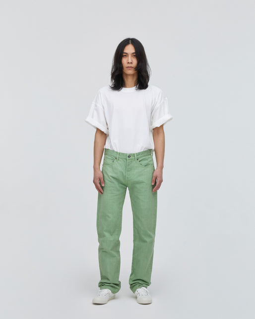 伝統的なセルヴィッチデニムです。ブルキナコットンを使用しているので、産地へのリスペクトを込めてブルキナファソ国の国旗の色が耳に織られています。