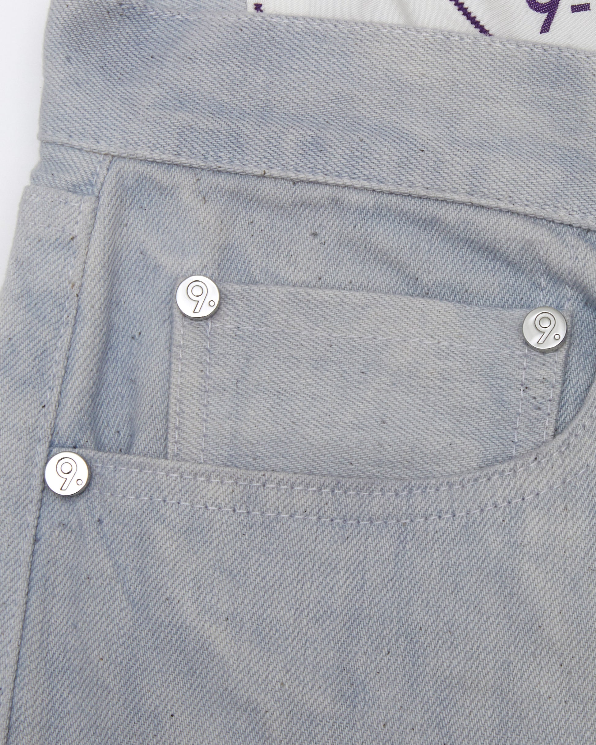 9-jour.オリジナルのロゴが刻印されたネオバ釦。デニムが生分解出来るように、ネジ式で取り外すことが出来ます。