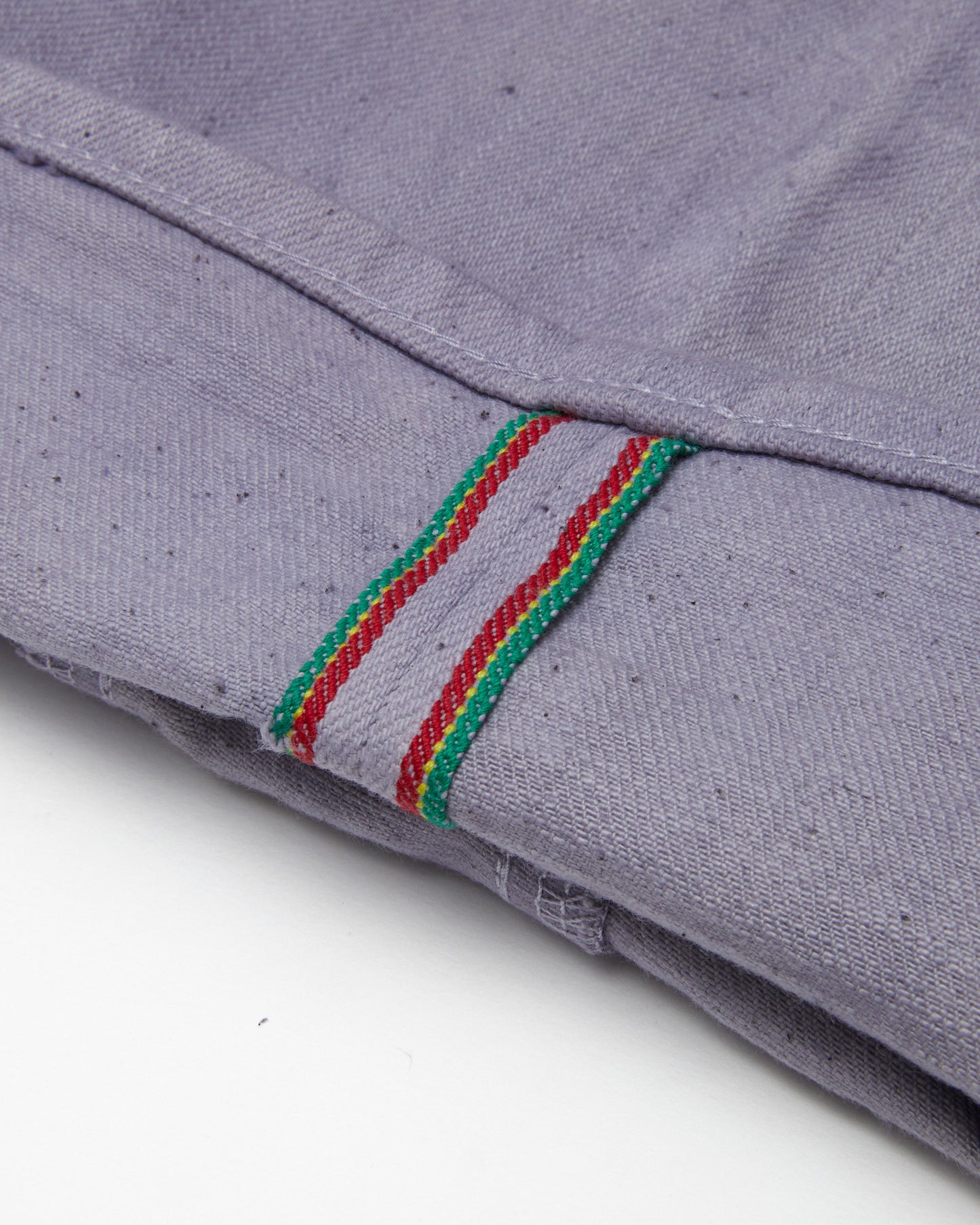 伝統的なセルヴィッチデニムです。ブルキナコットンを使用しているので、産地へのリスペクトを込めてブルキナファソ国の国旗の色が耳に織られています。